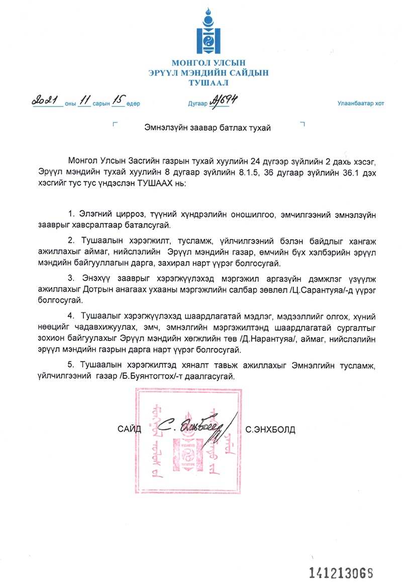 Эмнэл зүйн зааврын бүрэн эхийг хавсралт хэсгээс үзнэ үү.