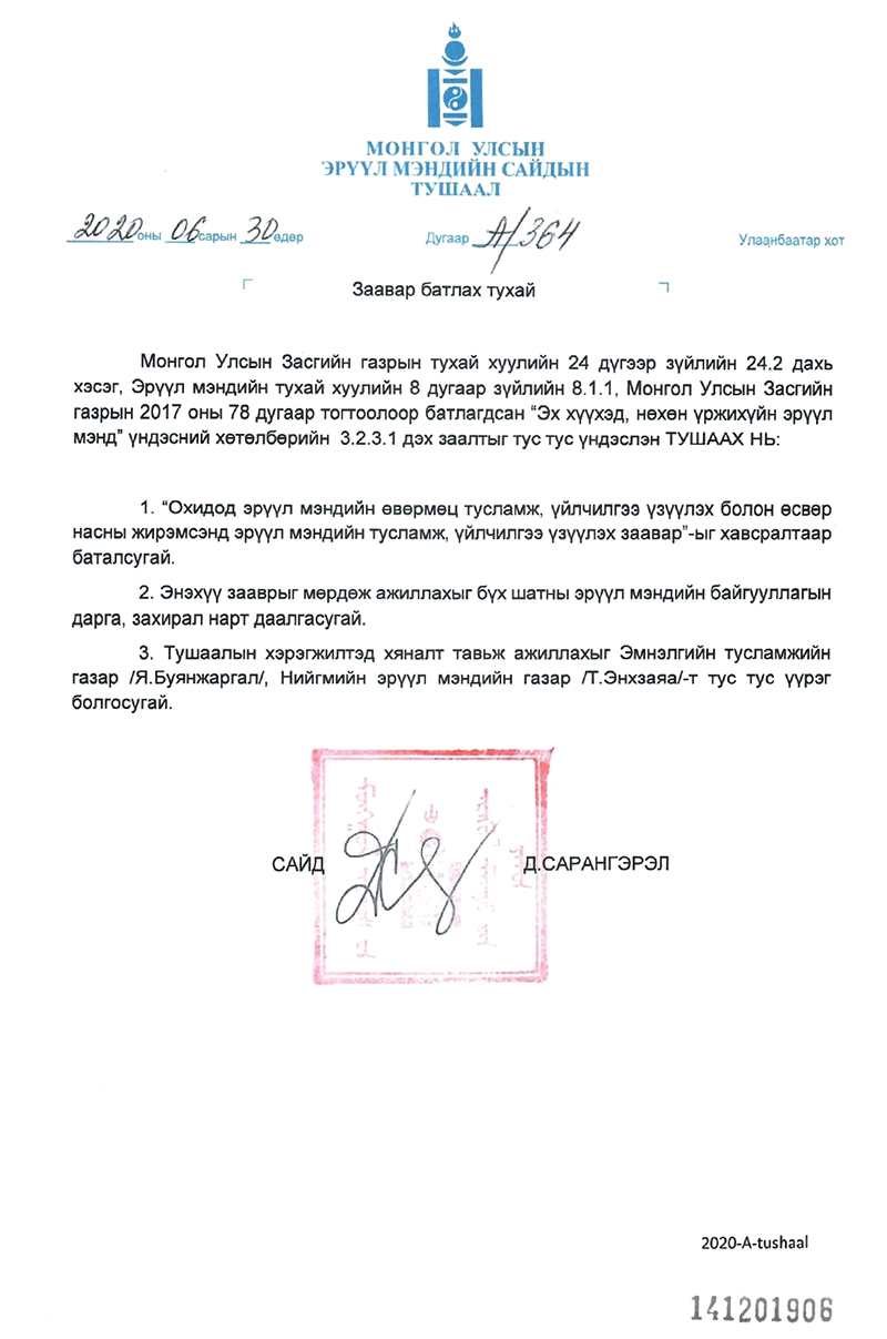 Эмнэл зүйн зааврын бүрэн эхийг хавсралт хэсгээс үзнэ үү.